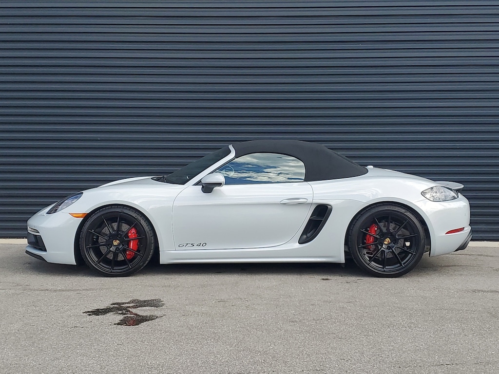 1-Owner Porsche Approved. Certified Warranty. Ice Grey Metallic 2023 Porsche 718 Boxster GTS 18-Way Adaptive Sport Seats Plus, BOSE Surround Sound System, Burmester High-End Surround Sound System, Center Console Lid w/Model Logo, Dashboard Trim Package in Leather, Door Trim Panel Package in Leather, Extended Deviated Stitching Interior Package, Headlight Cleaning Sys Covers in Exterior Color, Heated Multifunction Steering Wheel, Illum Bespoke Door-Sill Guards in Carbon Fiber, Interior Trim in Carbon Fiber, Lane Change Assist (LCA), LED Headlights w/Porsche Dynamic Light System Plus, Light Design Package, Luggage Net in Passenger Footwell, Manual Gear Lever w/Carbon Fiber Trim, Memory Package, Navigation w/Porsche Connect, Porsche Crest on Headrests, Porsche Entry & Drive, Power Folding Exterior Mirrors, Power Steering Plus, Premium Package, Steering Wheel & Gear Lever in Leather, Sun Visors in Leather, Supplemental Safety Bars in Exterior Color, Ventilated Seats, Voice Control. This 2023 Porsche 718 Boxster GTS won't last long!! Please call us or stop by today and take a closer look!!
