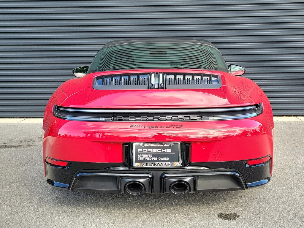 This low mileage and heavily equipped Porsche Approved 2025 911 Targa 4 GTS is finished in Carmine Red over a Club Leather interior in Basalt Black. This example blends open-air driving with everyday usability and unmistakable GTS performance.