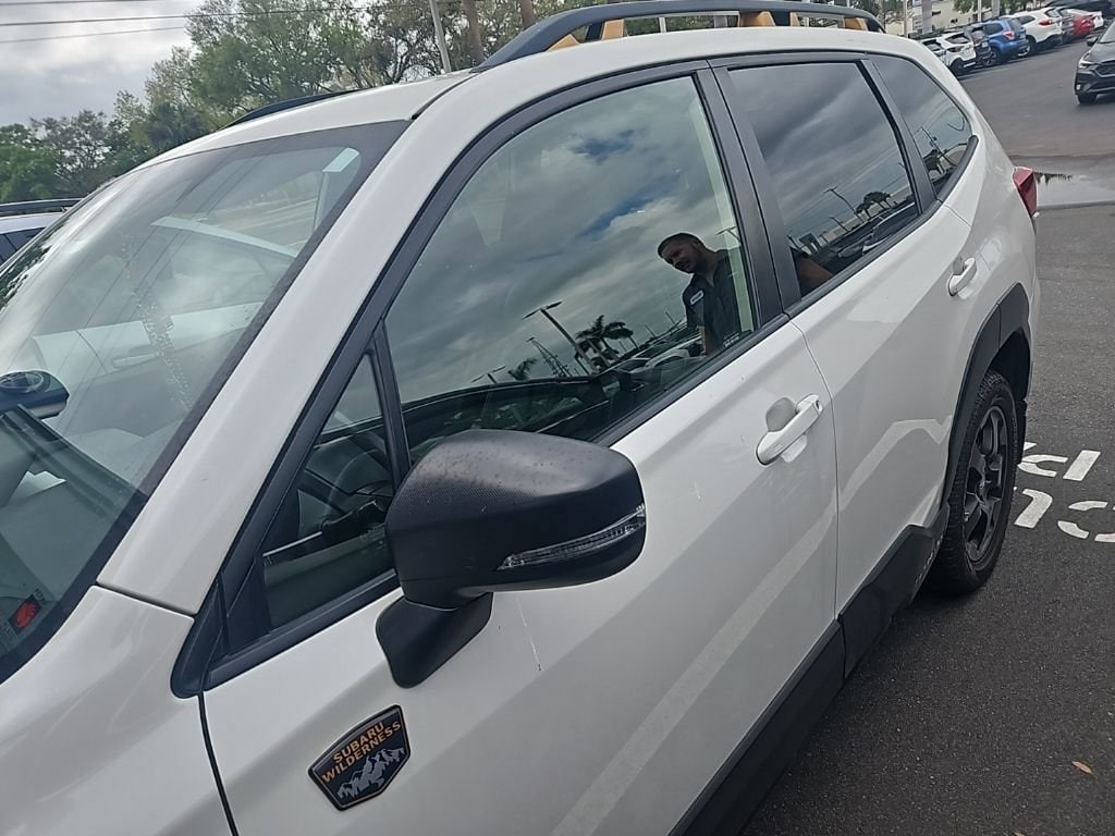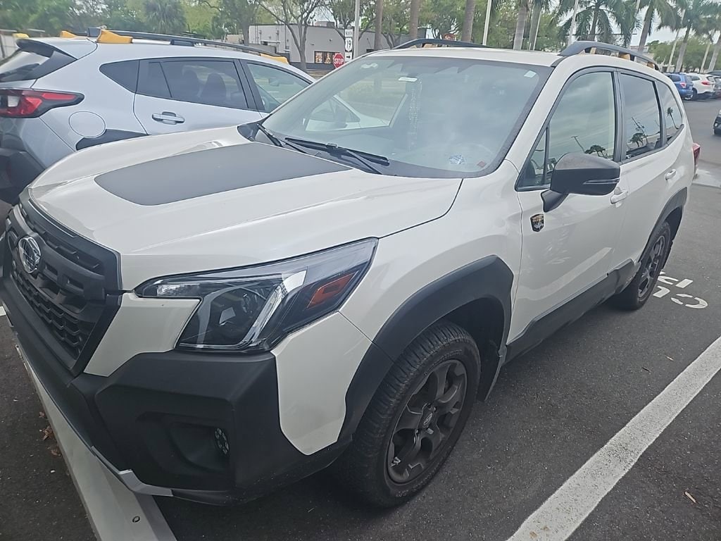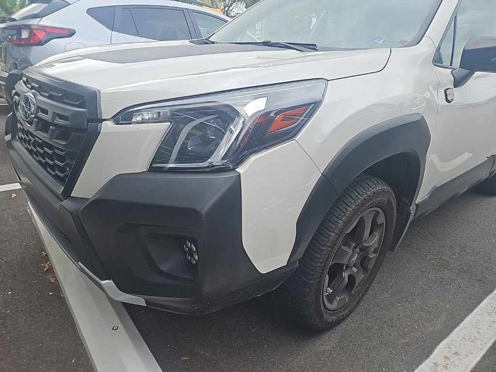 Recent Arrival! Certified. Crystal White Pearl 2023 Subaru Forester Wilderness Sunroof, Navigation, **BACK UP CAMERA**, CLEAN CARFAX ONE OWNER / NO ACCIDENTS REPORTED..., BLUETOOTH HANDS-FREE PHONE CONNECTIVITY..., **SUBARU CERTIFIED**, APPLE CARPLAY & ANDROID AUTO..., EYESIGHT DRIVER-ASSIST SYSTEM W/AUTOMATIC EMERGENCY BRAKING, LANE DEPARTURE WARNING,ADAPTIVE CRUISE CONTROL W/LANE KEEP ASSIST, BLIND SPOT DETECTION WITH REAR CROSS-TRAFFIC ALERT, REAR VISION CAMERA W/ADAPTIVE GUIDELINES, ABS brakes, Alloy wheels, Auto High-beam Headlights, Automatic temperature control, Brake assist, CD player, Driver door bin, Driver vanity mirror, Dual front impact airbags, Dual front side impact airbags, Electronic Stability Control, Exterior Parking Camera Rear, Four wheel independent suspension, Front Center Armrest, Front dual zone A/C, Front fog lights, Front reading lights, Fully automatic headlights, harman/kardon 9-Speaker Audio System, Heated door mirrors, Heated front seats, Knee airbag, Low tire pressure warning, Outside temperature display, Overhead airbag, Overhead console, Passenger door bin, Passenger vanity mirror, Power door mirrors, Power driver seat, Power moonroof: Panoramic, Power Rear Gate, Power steering, Power windows, Radio: Subaru Starlink 8.0" Multimedia Nav System, Rear seat center armrest, Rear window defroster, Rear window wiper, Remote keyless entry, Speed-sensing steering, Split folding rear seat, Steering wheel mounted audio controls, Tachometer, Telescoping steering wheel, Textured StarTex Upholstery, Tilt steering wheel, Traction control, Trip computer, Variably intermittent wipers, Wheels: 17" x 7.0 J Matte Black Finish Alum-Alloy. This 2023 Subaru Forester Wilderness won't last long!! Please call us or stop by today and take a closer look!!