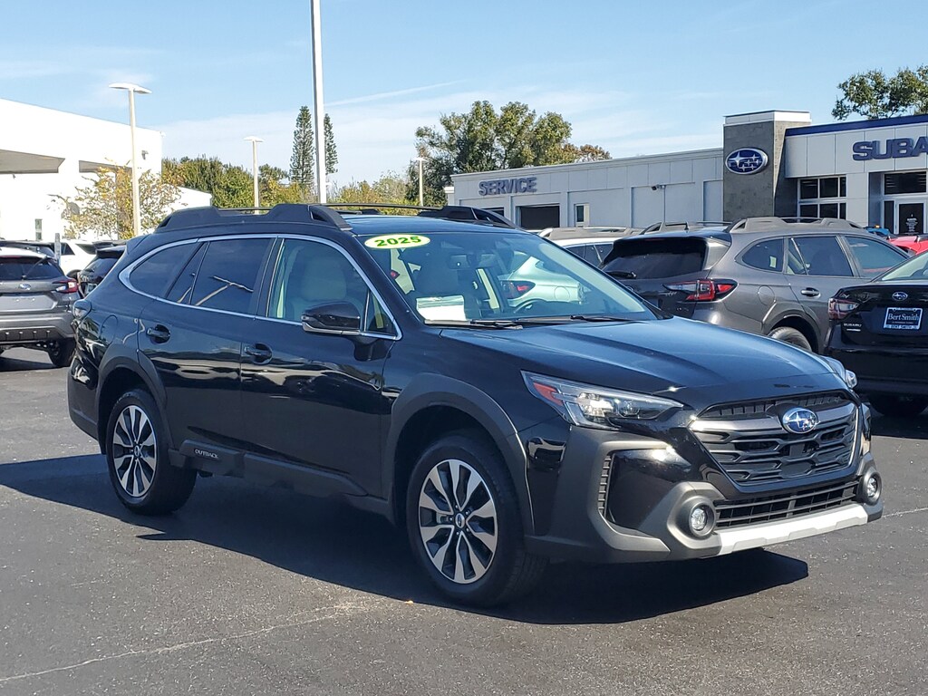 Recent Arrival! Certified. Crystal Black Silica 2025 Subaru Outback Limited Leather, Sunroof, **BACK UP CAMERA**, BLUETOOTH HANDS-FREE PHONE CONNECTIVITY..., **SUBARU CERTIFIED**, APPLE CARPLAY & ANDROID AUTO..., EYESIGHT DRIVER-ASSIST SYSTEM W/AUTOMATIC EMERGENCY BRAKING, LANE DEPARTURE WARNING,ADAPTIVE CRUISE CONTROL W/LANE KEEP ASSIST, BLIND SPOT DETECTION WITH REAR CROSS-TRAFFIC ALERT, REAR VISION CAMERA W/ADAPTIVE GUIDELINES, 4-Wheel Disc Brakes, ABS brakes, Auto High-beam Headlights, Automatic temperature control, Brake assist, Driver door bin, Driver vanity mirror, Dual front impact airbags, Dual front side impact airbags, Electronic Stability Control, Exterior Parking Camera Rear, Four wheel independent suspension, Front Center Armrest w/Storage, Front dual zone A/C, Front fog lights, Front reading lights, Fully automatic headlights, Heated front seats, Knee airbag, Low tire pressure warning, Navigation system: TomTom Navigation w/what3words, Outside temperature display, Overhead airbag, Passenger door bin, Passenger vanity mirror, Perforated Leather-Trimmed Upholstery, Power door mirrors, Power driver seat, Power Liftgate, Power moonroof, Power passenger seat, Power steering, Power windows, Radio: Subaru 11.6" Multimedia System w/Navigation, Rear seat center armrest, Rear window defroster, Rear window wiper, Remote keyless entry, Speed-sensing steering, Split folding rear seat, Steering wheel mounted audio controls, Tachometer, Telescoping steering wheel, Tilt steering wheel, Traction control, Trip computer, Variably intermittent wipers, Wheels: 18" x 7J Black Aluminum-Alloy. This 2025 Subaru Outback Limited won't last long!! Please call us or stop by today and take a closer look!!
