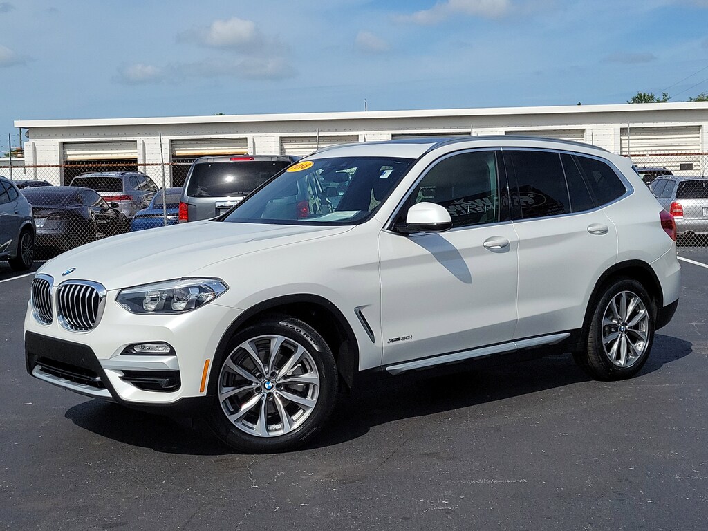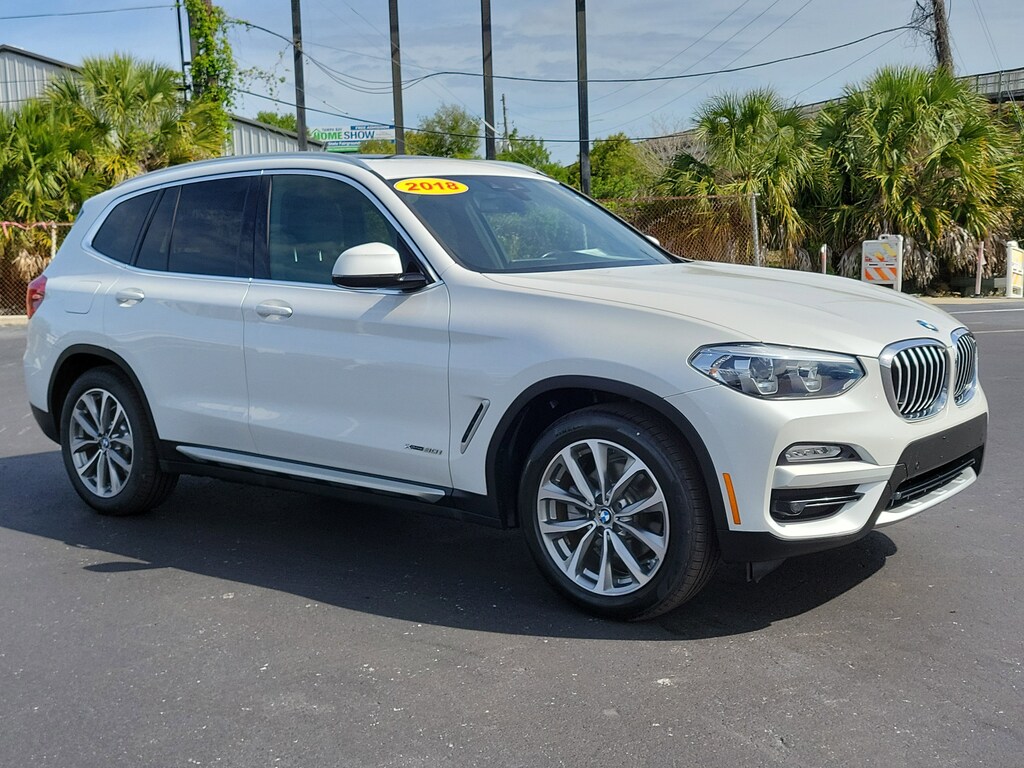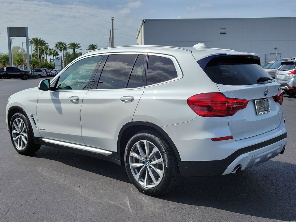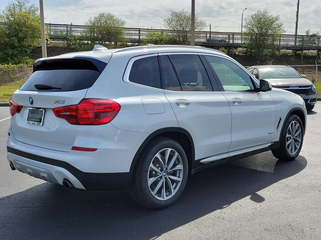 Recent Arrival! White Metallic 2018 BMW X3 xDrive30i 8-Speed Automatic, 12 Speakers, 4-Wheel Disc Brakes, ABS brakes, Active Blind Spot Detection, Active Driving Assistant, Advanced Real-Time Traffic Information, Air Conditioning, AM/FM radio, Anti-Theft AM/FM Stereo CD/MP3 Player, Auto-dimming door mirrors, Automatic temperature control, Brake assist, Bumpers: body-color, CD player, Dual front impact airbags, Dual front side impact airbags, DVD Area Coding (North America), Electronic Stability Control, Emergency communication system: BMW Assist eCall, Exterior Parking Camera Rear, Four wheel independent suspension, Front anti-roll bar, Front Bucket Seats, Front Center Armrest, Front dual zone A/C, Front fog lights, Front reading lights, Fully automatic headlights, Garage door transmitter, Genuine wood dashboard insert, Genuine wood door panel insert, Hands-Free Bluetooth & USB Audio Connection, Heated door mirrors, Heated Front Seats, Hi-Fi Sound System, In-Dash CD Player, Knee airbag, Lane Departure Warning System, Memory seat, Navigation System, Panic alarm, Panoramic Moonroof, Power driver seat, Power Front Seats, Power Liftgate, Power passenger seat, Power steering, Power windows, Radio Control US, Rain sensing wipers, Rear air conditioning, Rear window defroster, Remote keyless entry, Remote Services, Security system, SensaTec Upholstery, Speed-sensing steering, Speed-Sensitive Wipers, Split folding rear seat, Sport Seats, Steering wheel mounted audio controls, Turn signal indicator mirrors, Variably intermittent wipers, Wheels: 19" x 7.5" (Style 692). This 2018 BMW X3 xDrive30i won't last long!! Please call us or stop by today and take a closer look!!22/29 City/Highway MPG Odometer is 16350 miles below market average!Awards: * JD Power Automotive Performance, Execution and Layout (APEAL) Study Bert Smith Automotive has been serving the St. Petersburg community for over 40 years!!