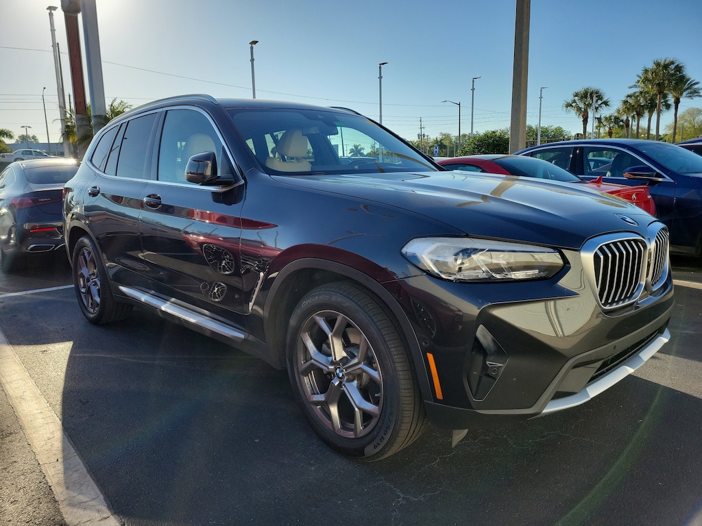 Dark Graphite Metallic 2023 BMW X3 xDrive30i 8-Speed Automatic Sport, 12 Speakers, 4-Wheel Disc Brakes, ABS brakes, Active Park Distance Control, Air Conditioning, AM/FM Radio, AM/FM radio: SiriusXM, Apple CarPlay & Android Auto Compatibility, Auto High-beam Headlights, Automatic temperature control, BMW Assist eCall, BMW TeleServices, Brake assist, Comfort Access Keyless Entry, Connected Package Pro, ConnectedDrive Services, Delay-off headlights, Driver Lumbar Support, Dual front impact airbags, Dual front side impact airbags, Electronic Stability Control, Emergency communication system: BMW Assist eCall, Enhanced USB & Bluetooth w/Smartphone Integration, Exterior Parking Camera Rear, Four wheel independent suspension, Front anti-roll bar, Front Bucket Seats, Front Center Armrest, Front dual zone A/C, Front reading lights, Fully automatic headlights, Garage door transmitter, Genuine wood dashboard insert, Heated Front Seats, Heated Steering Wheel, Hi-Fi Sound System, Knee airbag, Live Cockpit Pro w/Navigation, Low tire pressure warning, Memory seat, Navigation, Navigation System, Panic alarm, Panoramic Moonroof (ZPA), Parking Assistance Package, Parking Assistant Plus, Perforated SensaTec Upholstery, Power driver seat, Power Front Seats, Power Liftgate, Power passenger seat, Power windows, Premium Package w/ZPA, Radio data system, Rain sensing wipers, Rear air conditioning, Rear window defroster, Rear-View Camera, Remote keyless entry, Security system, SiriusXM Satellite Radio, Speed-sensing steering, Split folding rear seat, Steering wheel mounted audio controls, Surround View w/3D View, Traction control, Wheels: 19" x 7.5" Y-Spoke Ferric Grey (Style 693), WiFi Hotspot. This 2023 BMW X3 xDrive30i won't last long!! Please call us or stop by today and take a closer look!!Priced below KBB Fair Purchase Price! 21/28 City/Highway MPG Odometer is 13558 miles below market average!Bert Smith Automotive has been serving the St. Petersburg community for over 40 years!!