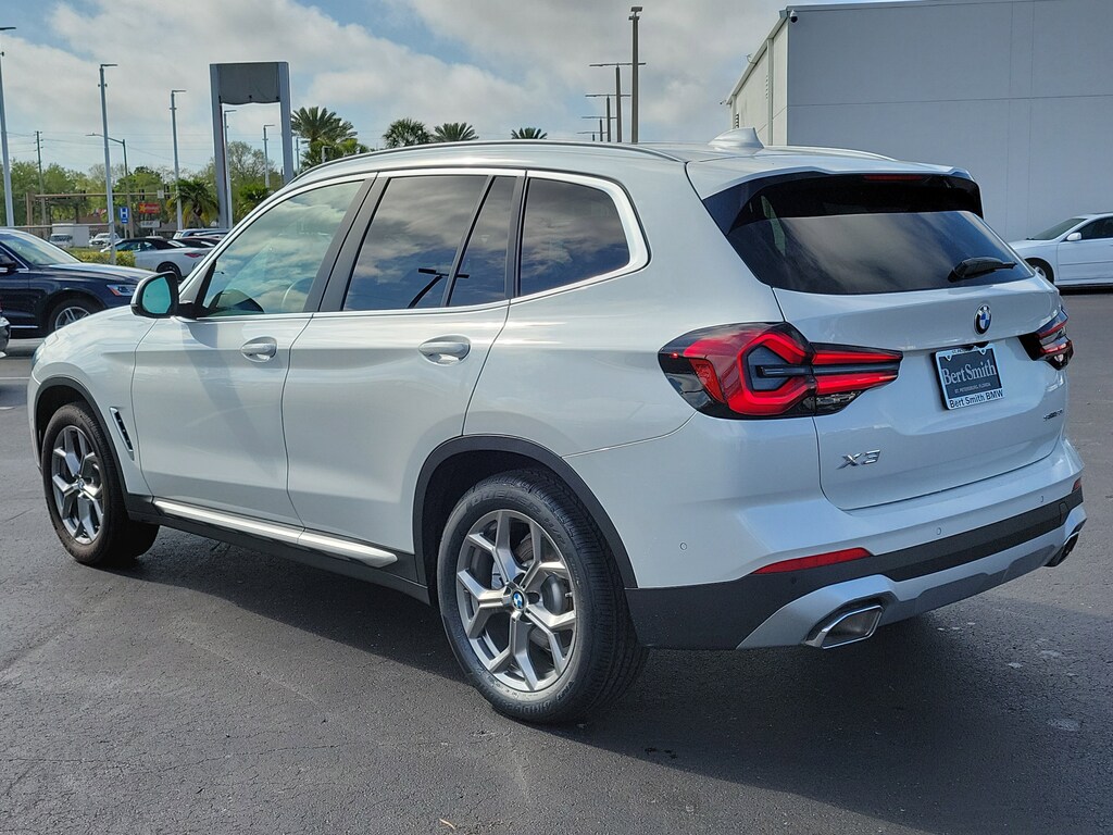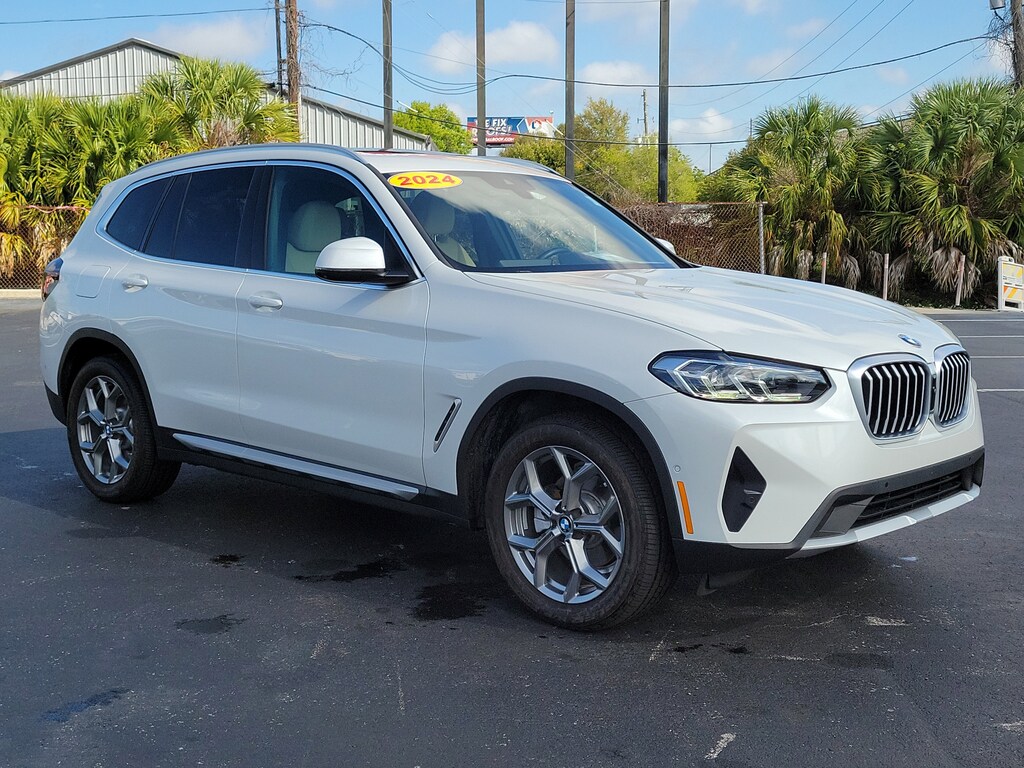 Mineral White Metallic 2024 BMW X3 sDrive30i 8-Speed Automatic Sport, 12 Speakers, ABS brakes, Active Park Distance Control, Air Conditioning, AM/FM Radio, AM/FM radio: SiriusXM, Apple CarPlay & Android Auto Compatibility, Automatic temperature control, BMW Assist eCall, BMW TeleServices, Comfort Access Keyless Entry, Connected Package Pro, ConnectedDrive Services, Dual front impact airbags, Dual front side impact airbags, Emergency communication system: BMW Assist eCall, Enhanced USB & Bluetooth w/Smartphone Integration, Exterior Parking Camera Rear, Front anti-roll bar, Front Bucket Seats, Front Center Armrest, Front dual zone A/C, Garage door transmitter, Genuine wood dashboard insert, Head-Up Display, Heated Front Seats, Heated Steering Wheel, Hi-Fi Sound System, Knee airbag, Leather steering wheel, Live Cockpit Pro w/Navigation, Lumbar Support, Memory seat, Navigation, Navigation System, Panic alarm, Panoramic Moonroof, Parking Assistance Package, Parking Assistant Plus, Perforated SensaTec Upholstery, Power driver seat, Power Front Seats, Power Liftgate, Power steering, Power windows, Premium Package, Rain sensing wipers, Rear air conditioning, Rear window defroster, Rear-View Camera, Remote Engine Start, Remote keyless entry, Security system, SiriusXM w/360L & 1 Yr Platinum Plan Subscription, Steering wheel mounted audio controls, Surround View w/3D View, Wheels: 19" x 7.5" Y-Spoke (Style 693), WiFi Hotspot. This 2024 BMW X3 sDrive30i won't last long!! Please call us or stop by today and take a closer look!!Priced below KBB Fair Purchase Price! 23/29 City/Highway MPG Odometer is 5200 miles below market average!Bert Smith Automotive has been serving the St. Petersburg community for over 40 years!!