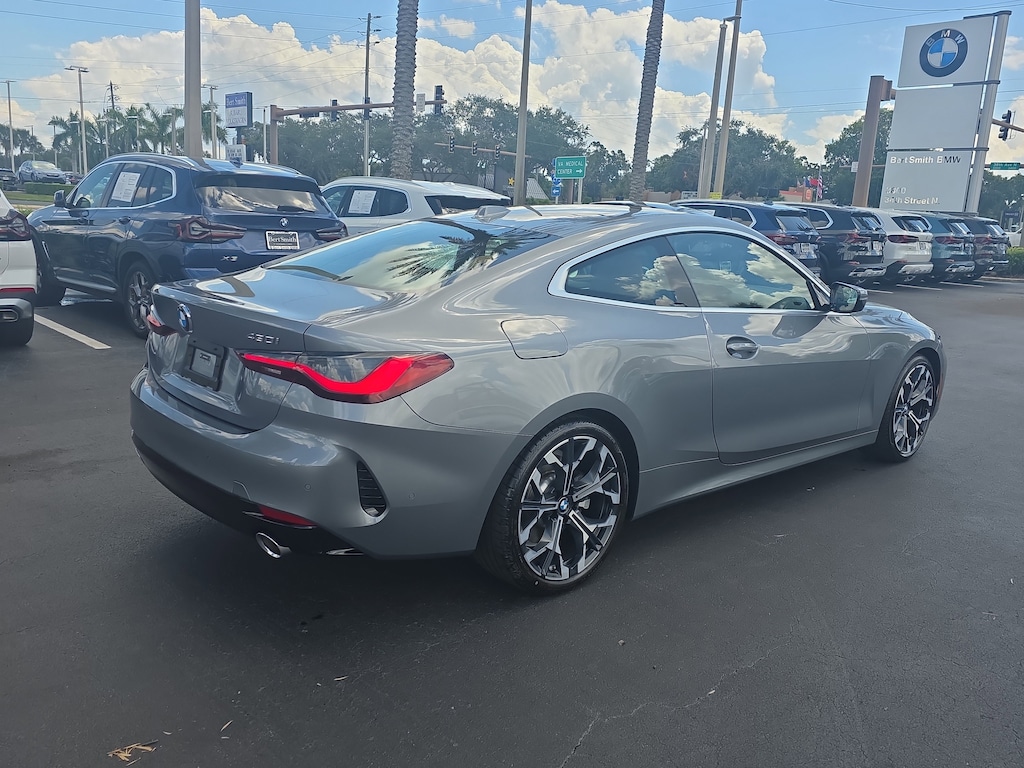 Skyscraper Gray Metallic 2025 BMW 4 Series 430i 10 Speakers, 4-Wheel Disc Brakes, ABS brakes, Active Park Distance Control, Air Conditioning, Alloy wheels, AM/FM Radio, AM/FM radio: SiriusXM with 360L, Apple CarPlay & Android Auto Compatibility, Audio memory, Auto High-beam Headlights, Auto-dimming Rear-View mirror, Automatic temperature control, BMW Assist eCall, BMW TeleServices, Brake assist, Comfort Access Keyless Entry, Compass, Connected Package Pro, ConnectedDrive Services, Convenience Package, Delay-off headlights, Driver door bin, Driver vanity mirror, Dual front impact airbags, Dual front side impact airbags, Electronic Stability Control, Emergency communication system: BMW Assist eCall, Exterior Parking Camera Rear, Four wheel independent suspension, Front anti-roll bar, Front dual zone A/C, Front reading lights, Fully automatic headlights, Heated Front Seats, Heated front seats, Heated Steering Wheel, Hi-Fi Sound System, HVAC memory, Illuminated entry, Knee airbag, Leather steering wheel, Low tire pressure warning, Lumbar Support, Memory seat, Navigation, Navigation System, Occupant sensing airbag, Outside temperature display, Overhead airbag, Overhead console, Panic alarm, Parking Assistance Package, Parking Assistant Plus, Passenger door bin, Perforated SensaTec Upholstery, Personal eSIM 5G, Power driver seat, Power Front Seats, Power moonroof, Power passenger seat, Power steering, Power windows, Radio data system, Rain sensing wipers, Rear anti-roll bar, Rear window defroster, Rear-View Camera, Remote Engine Start, Remote keyless entry, Security system, SiriusXM w/360L, Speed control, Speed-sensing steering, Split folding rear seat, Sport steering wheel, Steering wheel mounted audio controls, Surround View w/3D View, Tachometer, Telescoping steering wheel, Tilt steering wheel, Traction control, Turn signal indicator mirrors, Wheels: 18" x 7.5" V-Spoke Bicolor, Wheels: 19" x 8" Fr & 19" x 8.5" Rr Y-Spk Bicolor, Widescreen Display, Wireless Device Charging. This 2025 BMW 4 Series 430i won't last long!! Please call us or stop by today and take a closer look!!28/36 City/Highway MPG Odometer is 820 miles below market average!Bert Smith Automotive has been serving the St. Petersburg community for over 40 years!!
