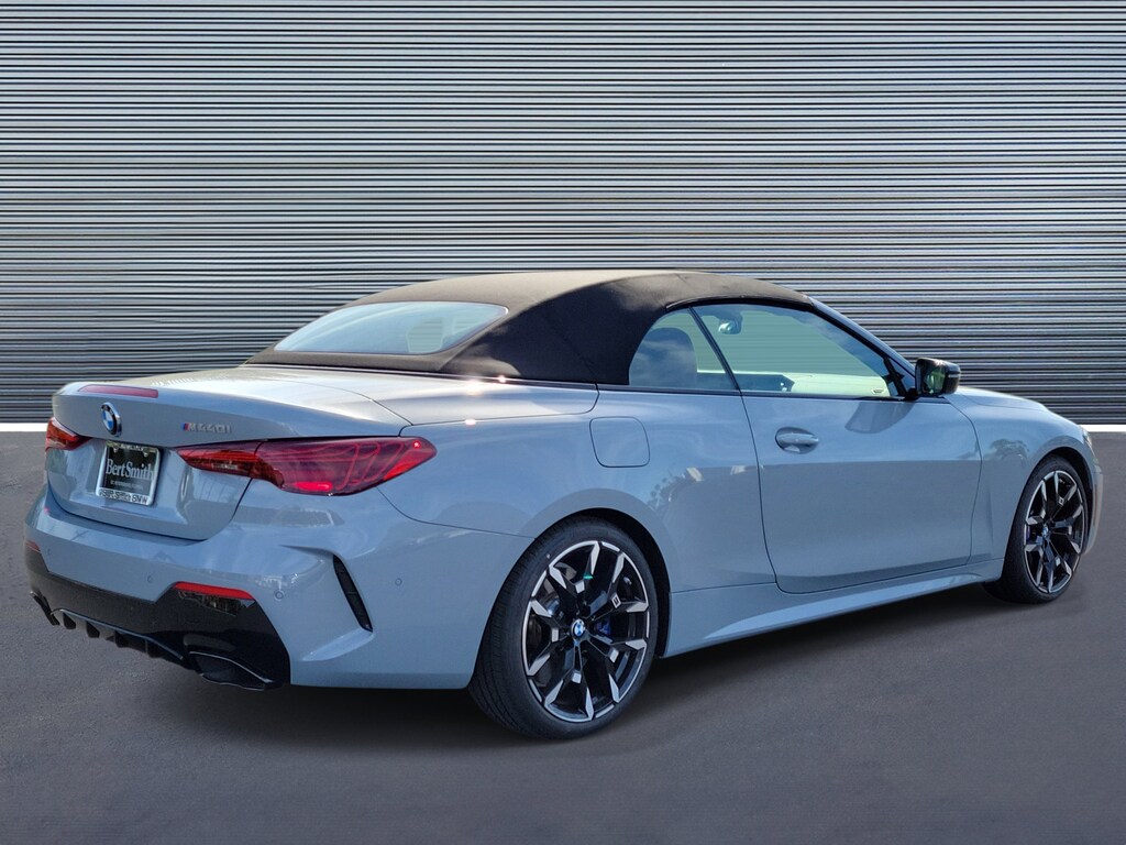 Brooklyn Grey Metallic 2026 BMW 4 Series M440i M Sport Pkg 10 Speakers, 4-Wheel Disc Brakes, ABS brakes, Air Conditioning, AM/FM Radio, AM/FM radio: SiriusXM with 360L, Apple CarPlay and Android Auto Compatibility, Audio memory, Auto High-beam Headlights, Auto-dimming door mirrors, Automatic temperature control, BMW Assist ECall, BMW Curved Display with HUD, BMW TeleServices, Brake assist, Bumpers: body-color, Compass, Connected Package Pro Limited Term, ConnectedDrive Services, Convertible roof lining, Convertible roof wind blocker, Delay-off headlights, Distance Control (ACC), Driver door bin, Driver vanity mirror, Driving Assistance Package, Dual front impact airbags, Dual front side impact airbags, Electronic Stability Control, Emergency communication system: BMW Assist eCall, Exterior Parking Camera Rear, Front anti-roll bar, Front Bucket Seats, Front Center Armrest, Front dual zone A/C, Front reading lights, Fully automatic headlights, Garage door transmitter, Harman/Kardon Surround Sound System, Heated door mirrors, Heated Front Seats, Heated front seats, Heated steering wheel, Hi-Fi Sound System, HVAC memory, Illuminated entry, Integrated roll-over protection, Knee airbag, Leather steering wheel, Low tire pressure warning, Lumbar Support, Memory seat, Navigation, Navigation System, Occupant sensing airbag, Outside temperature display, Overhead console, Panic alarm, Parking Assistance Package, Parking Assistant Plus, Parking View with 3D View (Surround View), Passenger vanity mirror, Perforated SensaTec Upholstery, Personal ESIM 5G, Power convertible roof, Power driver seat, Power Front Seats, Power passenger seat, Power steering, Power windows, Premium Package, Rain sensing wipers, Rear anti-roll bar, Rear reading lights, Rear seat center armrest, Remote keyless entry, Security system, SiriusXM with 360L and 1 Year Trial Subscription, Speed control, Sport steering wheel, Steering wheel mounted audio controls, Tachometer, Telescoping steering wheel, Wheels: 19" x 8" M Dual-Spoke Bicolor, Widescreen Display, Wireless Device Charging. This 2026 BMW 4 Series M440i won't last long!! Please call us or stop by today and take a closer look!!27/33 City/Highway MPG Odometer is 3410 miles below market average!Bert Smith Automotive has been serving the St. Petersburg community for over 40 years!!