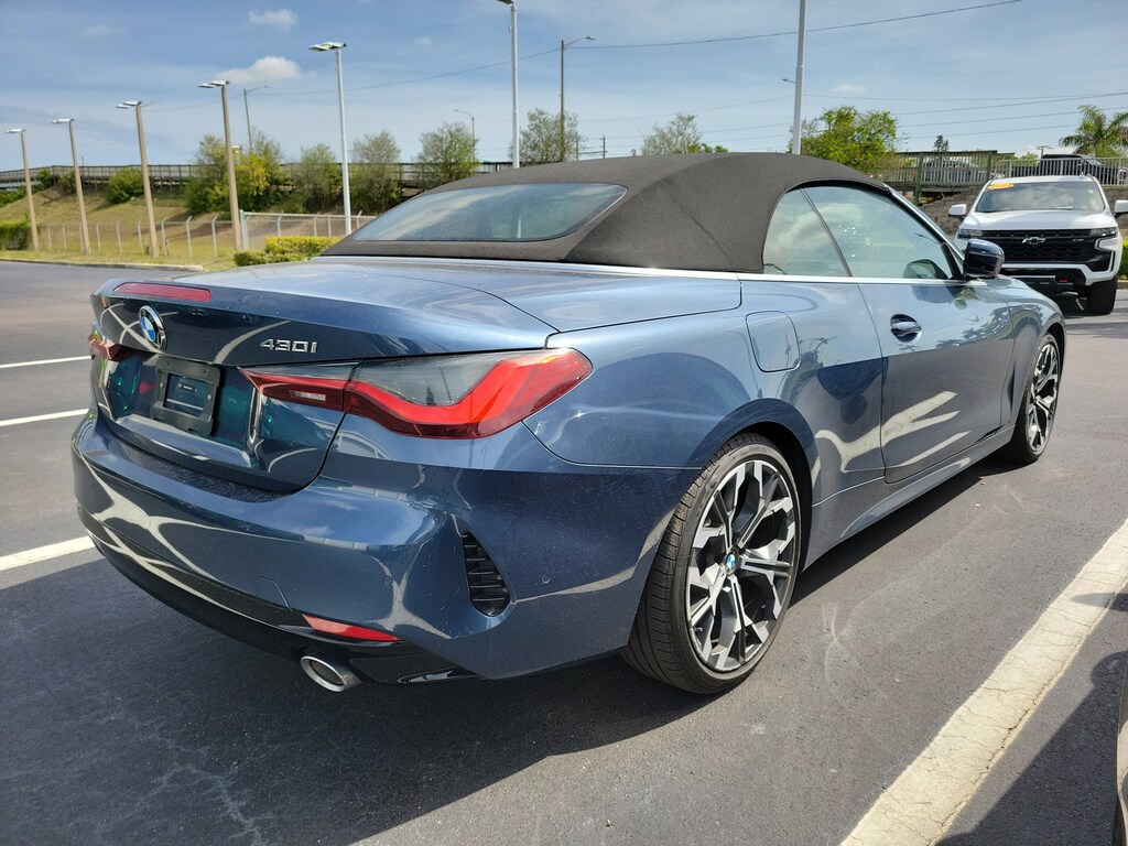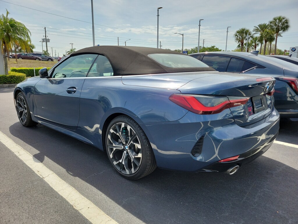 Recent Arrival! Blue Metallic 2026 BMW 4 Series 430i 10 Speakers, 4-Wheel Disc Brakes, ABS brakes, Air Conditioning, AM/FM Radio, AM/FM radio: SiriusXM with 360L, Apple CarPlay and Android Auto Compatibility, Audio memory, Automatic temperature control, BMW Assist ECall, BMW Curved Display with HUD, BMW TeleServices, Connected Package Pro Limited Term, ConnectedDrive Services, Convertible roof lining, Driver door bin, Driver vanity mirror, Dual front impact airbags, Dual front side impact airbags, Emergency communication system: BMW Assist eCall, Exterior Parking Camera Rear, Front anti-roll bar, Front dual zone A/C, Front reading lights, Glass rear window, Harman/Kardon Surround Sound System, Heated Front Seats, Heated front seats, Heated Steering Wheel, Hi-Fi Sound System, HVAC memory, Knee airbag, Lumbar Support, Memory seat, Navigation, Navigation System, Panic alarm, Parking Assistance Package, Parking Assistant Plus, Parking View with 3D View (Surround View), Personal ESIM 5G, Power door mirrors, Power driver seat, Power steering, Power windows, Premium Package, Rain sensing wipers, Remote Engine Start, Remote keyless entry, Security system, SiriusXM with 360L and 1 Year Trial Subscription, Speed-sensing steering, Wheels: 19" x 8" Individual Y-Spoke Bicolor, Widescreen Display, Wireless Device Charging. This 2026 BMW 4 Series 430i won't last long!! Please call us or stop by today and take a closer look!!27/35 City/Highway MPGBert Smith Automotive has been serving the St. Petersburg community for over 40 years!!