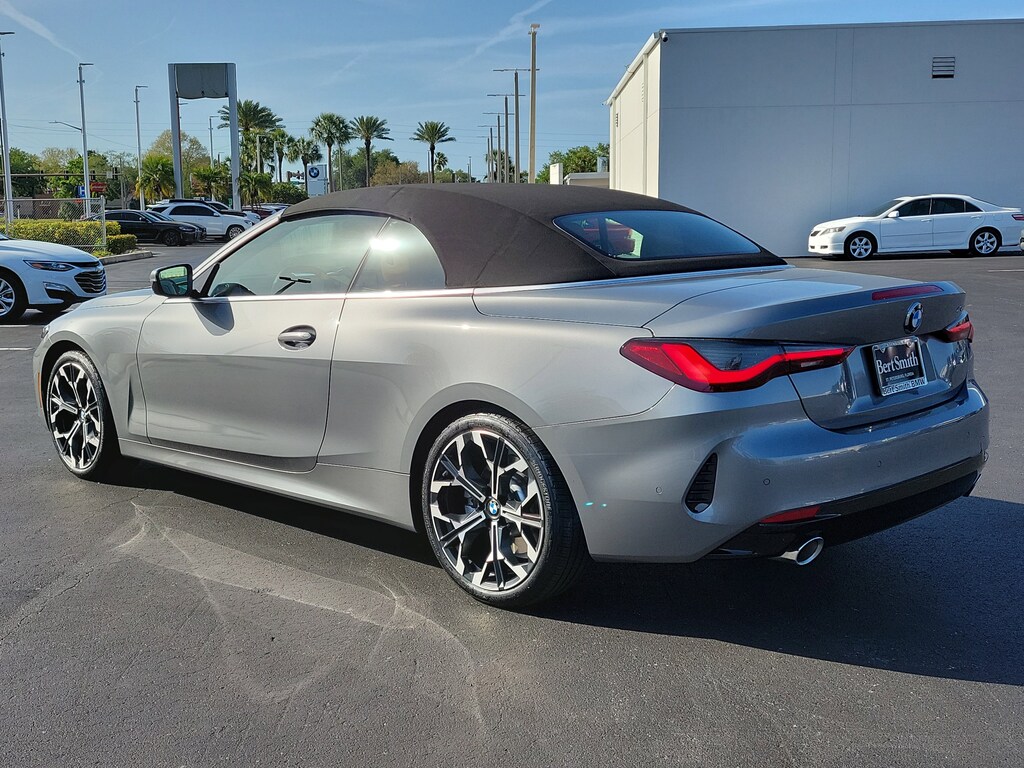 Skyscraper Gray Metallic 2026 BMW 4 Series 430i 10 Speakers, 4-Wheel Disc Brakes, 48V Mild Hybrid System, ABS brakes, Air Conditioning, AM/FM Radio, AM/FM radio: SiriusXM with 360L, Audio memory, Auto-dimming door mirrors, Automatic temperature control, BMW TeleServices, Brake assist, Bumpers: body-color, Compass, Connected Package Pro Limited Term, ConnectedDrive Services, Convertible roof lining, Convertible roof wind blocker, Driver door bin, Driver vanity mirror, Dual front impact airbags, Dual front side impact airbags, Electronic Stability Control, Emergency communication system: BMW Assist eCall, Exterior Parking Camera Rear, Four wheel independent suspension, Front Bucket Seats, Front Center Armrest, Front dual zone A/C, Front reading lights, Glass rear window, Heated Front Seats, Heated front seats, Heated Steering Wheel, Hi-Fi Sound System, HVAC memory, Illuminated entry, Knee airbag, Leather steering wheel, Low tire pressure warning, Lumbar Support, Memory seat, Navigation, Navigation System, Occupant sensing airbag, Overhead console, Panic alarm, Parking Assistance Package, Parking Assistant Plus, Passenger vanity mirror, Perforated SensaTec Upholstery, Power convertible roof, Power driver seat, Power Front Seats, Power passenger seat, Power steering, Power windows, Premium Package, Rear anti-roll bar, Rear reading lights, Rear seat center armrest, Rear window defroster, Remote Engine Start, Remote keyless entry, Security system, Speed control, Speed-sensing steering, Sport steering wheel, Steering wheel mounted audio controls, Tachometer, Telescoping steering wheel, Traction control, Wheels: 18" x 7.5" V-Spoke Bicolor, Widescreen Display, Wireless Device Charging. This 2026 BMW 4 Series 430i won't last long!! Please call us or stop by today and take a closer look!!27/35 City/Highway MPGBert Smith Automotive has been serving the St. Petersburg community for over 40 years!!