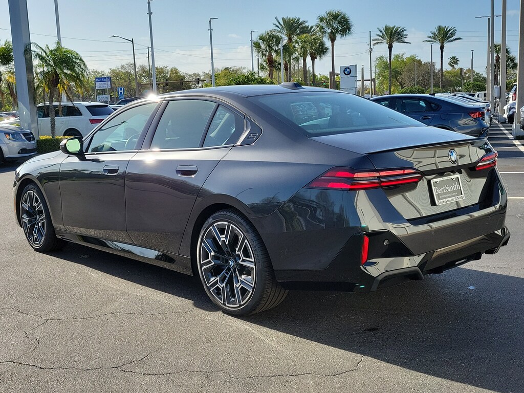 Dark Graphite Metallic 2026 BMW 5 Series 530i M Sport PKG Espresso Brown Premium Synthetic, 12 Speakers, 4-Wheel Disc Brakes, ABS brakes, Air Conditioning, AM/FM radio: SiriusXM with 360L, Apple CarPlay and Android Auto Compatibility, Auto-dimming door mirrors, Automatic temperature control, BMW Assist ECall, BMW Curved Display with HUD, BMW Iconic Glow Kidney Grille, BMW TeleServices, Brake assist, Connected Package Pro, ConnectedDrive Services, Delay-off headlights, Dual front impact airbags, Dual front side impact airbags, Electronic Stability Control, Emergency communication system: BMW Assist eCall, Extended Shadowline Trim, Exterior Parking Camera Rear, Front and Rear Heated Seats, Front Bucket Seats, Front dual zone A/C, Front reading lights, Front Ventilated Seats, Fully automatic headlights, Garage door transmitter, Genuine wood dashboard insert, Harman/Kardon Premium Sound System, harman/kardon® Speakers, Head restraints memory, Heated door mirrors, Heated Front Seats, Heated Steering Wheel, Interior Camera, Lumbar Support, Luxury Seating Package, M Shadowline Lights, M Sport Brake with Blue Calipers, M Sport Brakes with Red Calipers, M Sport Content, M Sport Exterior Elements, M Sport Interior Elements, M Sport Package, M Sport Package Pro, M Sport Pro Contents, M Sport Professional Package, M Sport Suspension, Memory seat, Multi-Function Seats, Navigation, Navigation System, Panic alarm, Parking Assistant Plus, Parking View with 3D View (Surround View), Personal ESIM 5G, Power door mirrors, Power driver seat, Power Front Seats, Power steering, Power windows, Premium Content 1, Premium Package, Radio data system, Radio: AM/FM Audio System, Rain sensing wipers, Rear Spoiler, Rear window defroster, Remote Engine Start, Remote keyless entry, Security system, SiriusXM with 360L and 1 Year Trial Subscription, Speed control, Speed-sensing steering, Sport Seats, Traction control, Wheels: 20" x 8.5" Front and 20" x 10.0" Rear M Bicolor, Wireless Device Charging. This 2026 BMW 5 Series 530i won't last long!! Please call us or stop by today and take a closer look!!28/35 City/Highway MPGBert Smith Automotive has been serving the St. Petersburg community for over 40 years!!