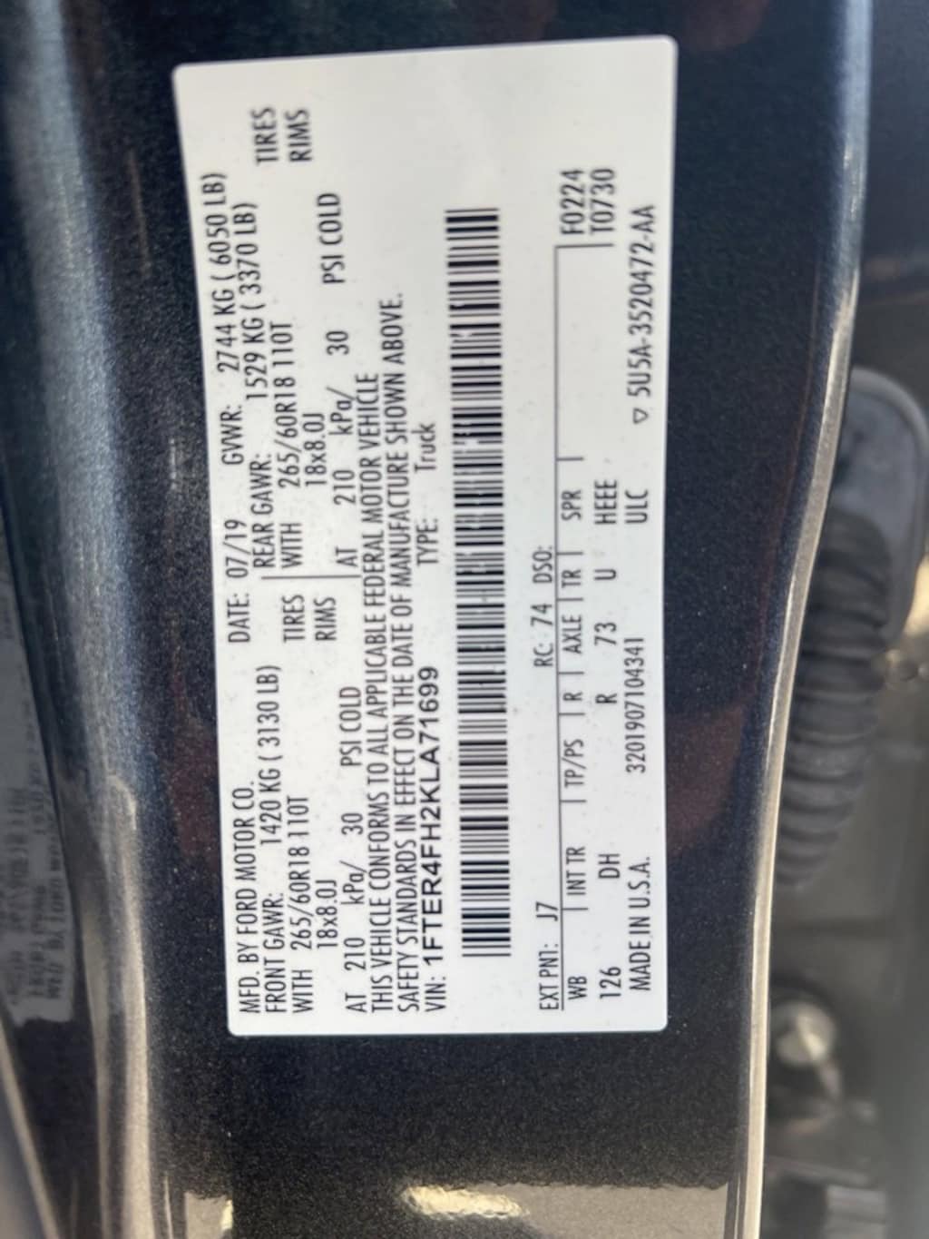 - 1FTER4FH2KLA71699