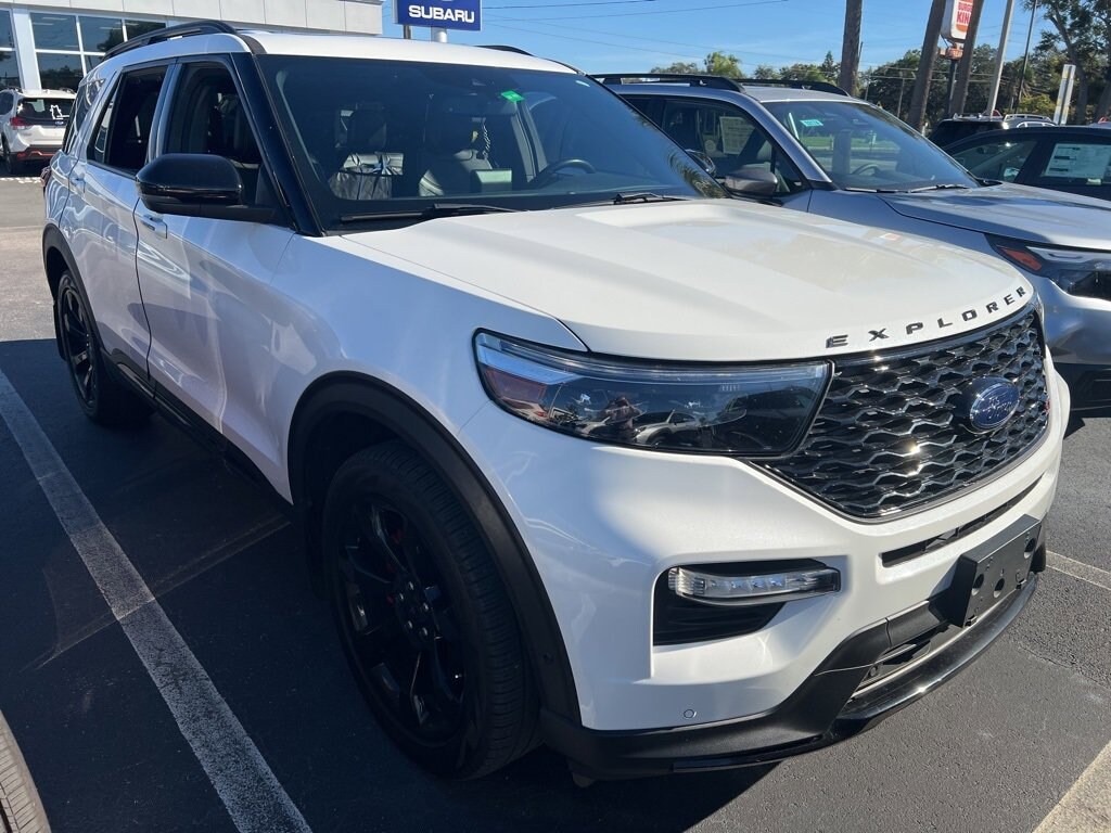 Recent Arrival! White 2021 Ford Explorer ST **BACK UP CAMERA**, BLUETOOTH HANDS-FREE PHONE CONNECTIVITY..., 4WD, 110V/150W AC Power Outlet, 360-Degree Camera w/Split View, 4-Wheel Disc Brakes, ABS brakes, Active Park Assist 2.0, Auto-Dimming Rearview Mirror (Interior), Automatic temperature control, Driver door bin, Driver vanity mirror, Dual front impact airbags, Dual front side impact airbags, Equipment Group 401A, Evasive Steering Assist, Ford Co-Pilot360 Assist+, FordPass Connect, Forward Sensing System, Front dual zone A/C, Front fog lights, Front Rain-Sensing Wipers, Front reading lights, Hands-Free Foot-Activated Liftgate, Heated front seats, Intelligent Adaptive Cruise Control, Low tire pressure warning, Memory Driver's Seat, Outside temperature display, Passenger door bin, Passenger vanity mirror, Performance Front & Rear Brakes, Power door mirrors, Power driver seat, Power Liftgate, Power passenger seat, Power steering, Power Tilt/Telescoping Steering Column, Power windows, Radio: B&O Sound System by Bang & Olufsen, Rear window defroster, Rear window wiper, Reverse Brake Assist, Second Row Heated Seats, Sideview Mirrors w/Gloss Black Caps, Speed Sign Recognition, ST High Package, ST Street Pack, Steering wheel mounted audio controls, SYNC 3 Communications & Entertainment System, Tachometer, Telescoping steering wheel, Third Row PowerFold (Folds Flat), Tilt steering wheel, Trip computer, Twin Panel Moonroof, Universal Garage Door Opener (UGDO), Variably intermittent wipers, Voice-Activated Touchscreen Navigation System, Wheels: 21" Aluminum, Wireless Charging Pad. This 2021 Ford Explorer ST won't last long!! Please call us or stop by today and take a closer look!!