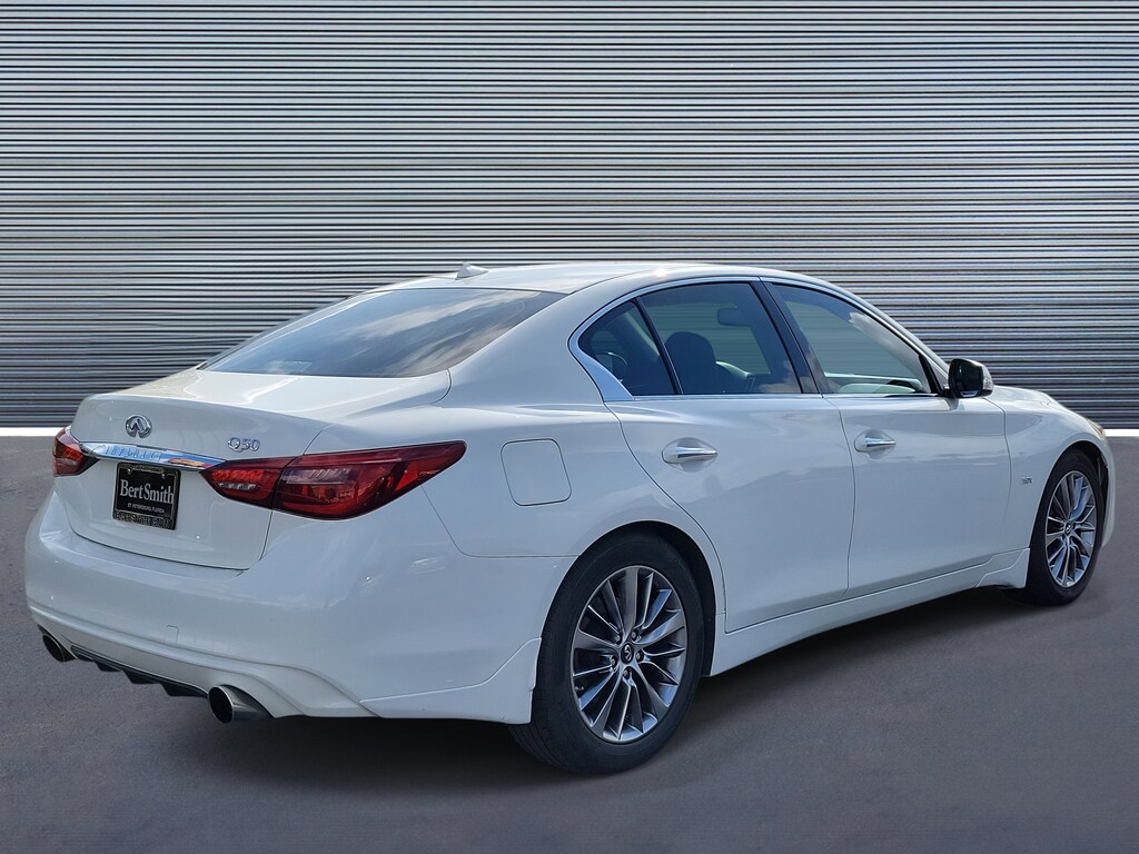 Pure White 2019 INFINITI Q50 3.0t LUXE 18" x 7.5" Aluminum Alloy Wheels, 4-Wheel Disc Brakes, 6 Speakers, 60/40 Split-Folding Rear Seats, Air Conditioning, AM/FM radio: SiriusXM, Anti-whiplash front head restraints, Auto-dimming Rear-View mirror, Automatic temperature control, Brake assist, CD player, Compass, Delay-off headlights, Driver door bin, Driver Seat Power Lumbar, Dual front impact airbags, Dual front side impact airbags, Electronic Stability Control, Essential Package (3.0t LUXE), Four wheel independent suspension, Front anti-roll bar, Front Center Armrest, Front dual zone A/C, Front fog lights, Heated door mirrors, Heated Front Seats, Heated Steering Wheel, INFINITI InTouch Navigation System, Low tire pressure warning, Overhead console, Panic alarm, Passenger vanity mirror, Power door mirrors, Power driver seat, Power moonroof, Power passenger seat, Power steering, Power windows, Radio data system, Radio: AM/FM/HD/CD w/MP3 Playback Capability, Rain sensing wipers, Rear reading lights, Rear window defroster, Remote Engine Start, Remote keyless entry, Security system, Speed control, Speed-sensing steering, Steering wheel mounted audio controls, Tachometer, Telescoping steering wheel, Traction control. This 2019 INFINITI Q50 3.0t LUXE won't last long!! Please call us or stop by today and take a closer look!!Priced below KBB Fair Purchase Price! 20/29 City/Highway MPG Odometer is 27747 miles below market average!Awards: * 2019 KBB.com 10 Best Luxury Cars Under $35,000 Bert Smith Automotive has been serving the St. Petersburg community for over 40 years!!
