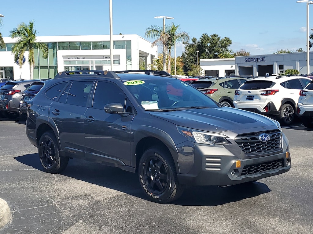 Magnetite Gray Metallic 2023 Subaru Outback Wilderness Sunroof, **BACK UP CAMERA**, CLEAN CARFAX ONE OWNER / NO ACCIDENTS REPORTED..., BLUETOOTH HANDS-FREE PHONE CONNECTIVITY..., **SUBARU CERTIFIED**, APPLE CARPLAY & ANDROID AUTO..., EYESIGHT DRIVER-ASSIST SYSTEM W/AUTOMATIC EMERGENCY BRAKING, LANE DEPARTURE WARNING,ADAPTIVE CRUISE CONTROL W/LANE KEEP ASSIST, BLIND SPOT DETECTION WITH REAR CROSS-TRAFFIC ALERT, REAR VISION CAMERA W/ADAPTIVE GUIDELINES, 4-Wheel Disc Brakes, ABS brakes, Auto High-beam Headlights, Automatic temperature control, Brake assist, Compass, Driver door bin, Driver vanity mirror, Dual front impact airbags, Dual front side impact airbags, Exterior Parking Camera Rear, Front Center Armrest w/Storage, Front dual zone A/C, Front fog lights, Front reading lights, Fully automatic headlights, Heated front seats, Knee airbag, Low tire pressure warning, Outside temperature display, Overhead airbag, Passenger door bin, Passenger vanity mirror, Power door mirrors, Power driver seat, Power Liftgate, Power Moonroof, Power Moonroof & Navigation & RAB, Power steering, Power windows, Radio: Subaru STARLINK 11.6" Multimedia Nav System, Rear seat center armrest, Rear window defroster, Rear window wiper, Remote keyless entry, Reverse Automatic Braking (RAB) System, Split folding rear seat, StarTex-Trimmed Upholstery, Tachometer, Telescoping steering wheel, Tilt steering wheel, Trip computer, Variably intermittent wipers, Wheels: 17" x 7J Black Aluminum Alloy. This 2023 Subaru Outback Wilderness won't last long!! Please call us or stop by today and take a closer look!!
