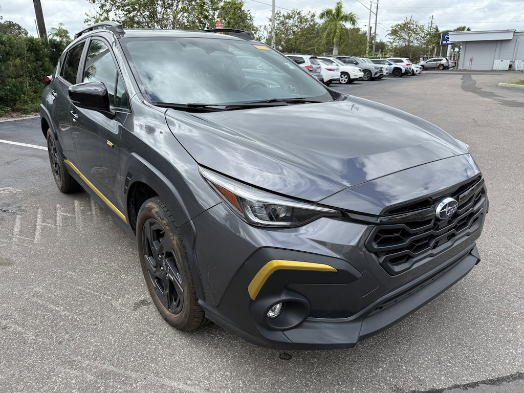 Magnetite Gray Metallic 2024 Subaru Crosstrek Sport Sunroof, **BACK UP CAMERA**, BLUETOOTH HANDS-FREE PHONE CONNECTIVITY..., APPLE CARPLAY & ANDROID AUTO..., EYESIGHT DRIVER-ASSIST SYSTEM W/AUTOMATIC EMERGENCY BRAKING, LANE DEPARTURE WARNING,ADAPTIVE CRUISE CONTROL W/LANE KEEP ASSIST, BLIND SPOT DETECTION WITH REAR CROSS-TRAFFIC ALERT, REAR VISION CAMERA W/ADAPTIVE GUIDELINES, 10-Way Power Driver's Seat, 3.70 Axle Ratio, 4-Wheel Disc Brakes, 6 Speakers, ABS brakes, Air Conditioning, Alloy wheels, AM/FM radio: SiriusXM, Anti-whiplash front head restraints, Auto High-beam Headlights, Automatic temperature control, Blind Spot Detection w/Rear Cross-Traffic Alert, Brake assist, BSD/RCTA & Power Driver Seat & Power Moonroof, Bumpers: body-color, Driver door bin, Driver vanity mirror, Dual front impact airbags, Dual front side impact airbags, Electronic Stability Control, Emergency communication system: STARLINK Safety and Security (Subscription Required), Exterior Parking Camera Rear, Four wheel independent suspension, Front anti-roll bar, Front Center Armrest, Front dual zone A/C, Front fog lights, Front reading lights, Fully automatic headlights, Heated door mirrors, Heated front seats, Illuminated entry, Knee airbag, Leather Shift Knob, Low tire pressure warning, Occupant sensing airbag, Outside temperature display, Overhead airbag, Overhead console, Panic alarm, Passenger door bin, Passenger vanity mirror, Power door mirrors, Power Moonroof, Power steering, Power windows, Radio data system, Radio: Subaru STARLINK 11.6" Multimedia Plus Sys, Rear anti-roll bar, Rear seat center armrest, Rear window defroster, Rear window wiper, Remote keyless entry, Security system, Speed control, Speed-sensing steering, Split folding rear seat, Sport Cloth Upholstery, STARLINK/Apple CarPlay/Android Auto, Steering wheel mounted audio controls, Tachometer, Telescoping steering wheel, Tilt steering wheel, Traction control, Trip computer, Turn signal indicator mirrors, Variably intermittent wipers, Wheels: 18" x 7.0J Dark Gray Aluminum Alloy. This 2024 Subaru Crosstrek Sport won't last long!! Please call us or stop by today and take a closer look!!