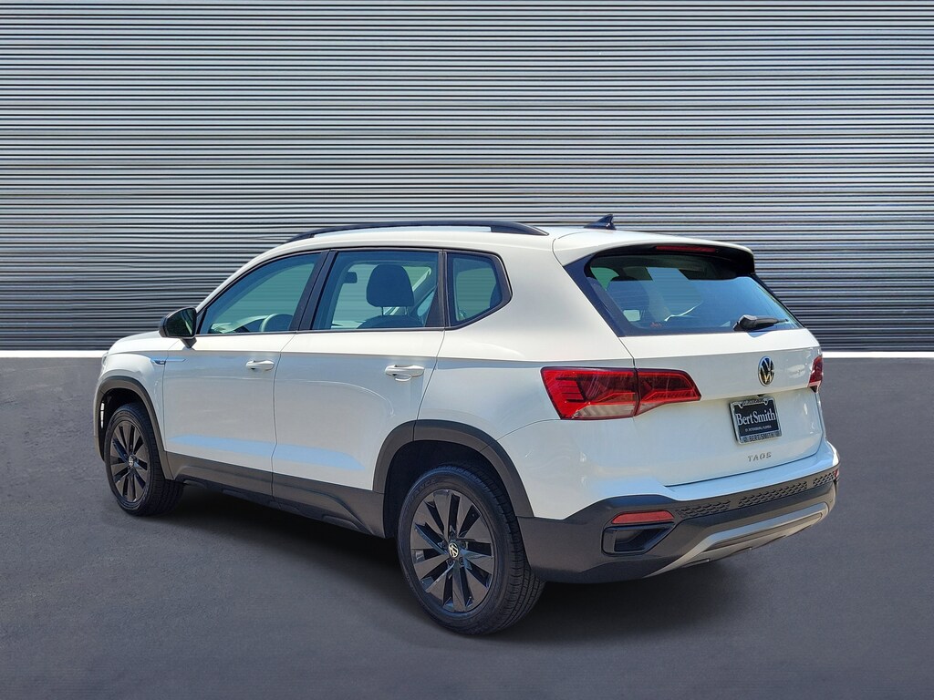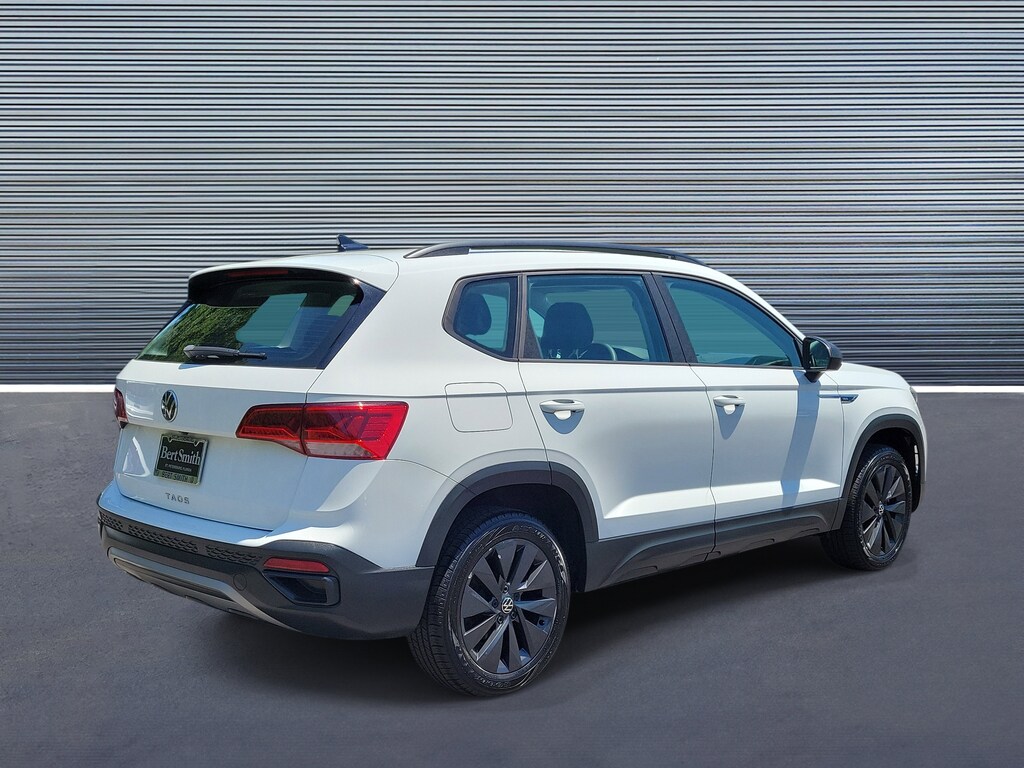 Recent Arrival! CARFAX One-Owner. Pure White 2022 Volkswagen Taos 1.5T S 17" Silver Alloy Wheels, 3.23 Axle Ratio, 4-Wheel Disc Brakes, 6 Speakers, ABS brakes, Air Conditioning, Alloy wheels, AM/FM radio, Brake assist, Bumpers: body-color, Cloth Seating Surfaces, Compass, Delay-off headlights, Driver door bin, Driver vanity mirror, Dual front impact airbags, Dual front side impact airbags, Electronic Stability Control, Emergency communication system: Car-Net, Exterior Parking Camera Rear, Front anti-roll bar, Front Bucket Seats, Front Center Armrest, Front reading lights, Front Strut Rear Torsion Beam Suspension, Front wheel independent suspension, Fully automatic headlights, Illuminated entry, Low tire pressure warning, Occupant sensing airbag, Outside temperature display, Overhead airbag, Overhead console, Panic alarm, Passenger door bin, Passenger vanity mirror, Power door mirrors, Power steering, Power windows, Radio data system, Radio: Composition Color AM/FM, Rear anti-roll bar, Rear seat center armrest, Rear window defroster, Rear window wiper, Remote keyless entry, Roof rack: rails only, Speed control, Speed-sensing steering, Split folding rear seat, Spoiler, Steering wheel mounted audio controls, Tachometer, Telescoping steering wheel, Tilt steering wheel, Traction control, Trip computer, and Variably intermittent wipers.