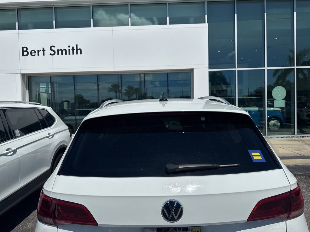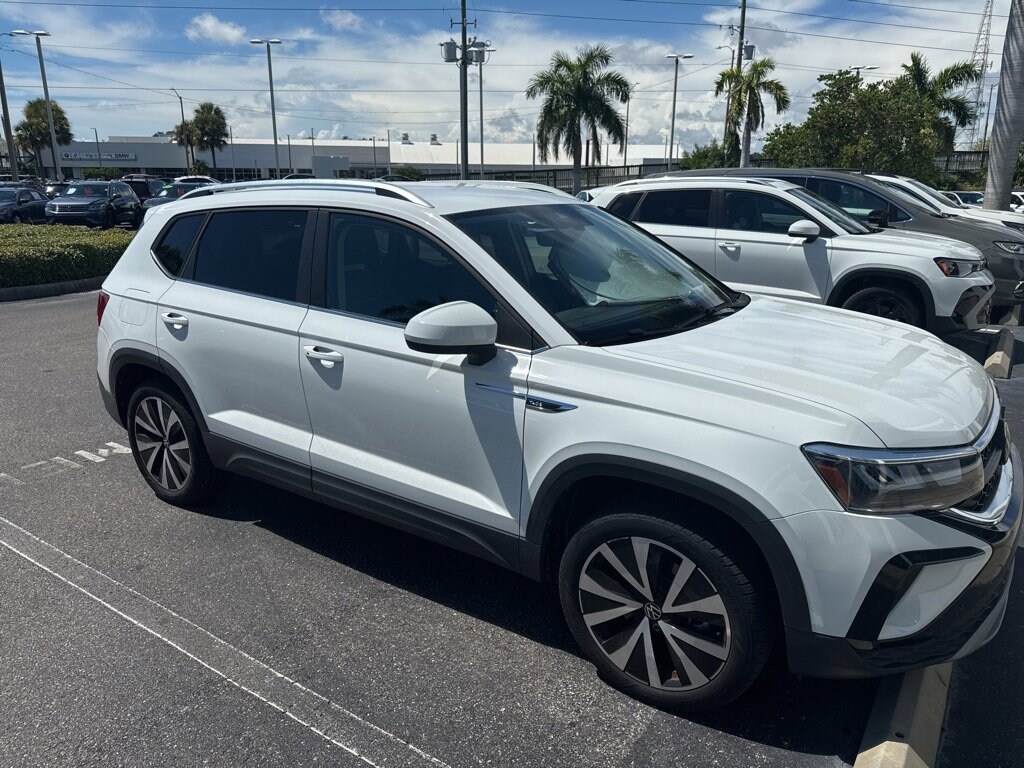 Recent Arrival! CARFAX One-Owner. White 2023 Volkswagen Taos 1.5T SE **NON SMOKER**, **BACK UP CAMERA**, ** Smart Access Key W/Push Button Start**, **CARFAX ONE OWNER**, BLUETOOTH HANDS-FREE PHONE CONNECTIVITY..., 3.23 Axle Ratio, 4-Wheel Disc Brakes, 6 Speakers, ABS brakes, Active Blind Spot Monitor, Air Conditioning, Alloy wheels, AM/FM radio: SiriusXM with 360L, Auto High-beam Headlights, Brake assist, Bumpers: body-color, CloudTex & Cloth Seating Surfaces, Compass, Delay-off headlights, Driver door bin, Driver vanity mirror, Dual front impact airbags, Dual front side impact airbags, Electronic Stability Control, Emergency communication system: VW Car-Net Safe & Secure 5-year, Exterior Parking Camera Rear, Front anti-roll bar, Front Bucket Seats, Front Center Armrest, Front reading lights, Front Strut Rear Torsion Beam Suspension, Front wheel independent suspension, Fully automatic headlights, Heated door mirrors, Heated Front Comfort Seats, Heated front seats, Heated steering wheel, Illuminated entry, Leather Shift Knob, Low tire pressure warning, Occupant sensing airbag, Outside temperature display, Overhead airbag, Overhead console, Panic alarm, Passenger door bin, Passenger vanity mirror, Power door mirrors, Power driver seat, Power steering, Power windows, Radio data system, Radio: MIB3 Composition Media AM/FM/HD, Rain sensing wipers, Rear anti-roll bar, Rear seat center armrest, Rear window defroster, Rear window wiper, Remote keyless entry, Roof rack: rails only, Security system, Speed control, Speed-sensing steering, Split folding rear seat, Spoiler, Steering wheel mounted audio controls, Tachometer, Telescoping steering wheel, Tilt steering wheel, Traction control, Trip computer, Variably intermittent wipers, Wheels: 18" 2-Tone Machined Alloy.